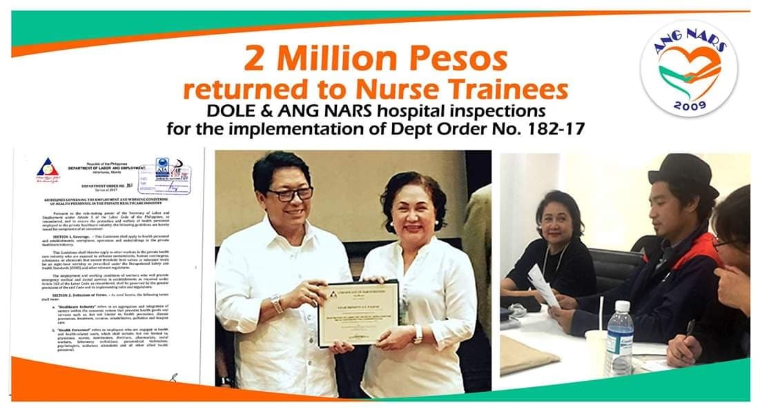 Through Department Order No. 182-17, DOLE has ordered the return of P2,190,828.75 by Makati Medical Center to the nurses who underwent the C.A.R.E Training Program
